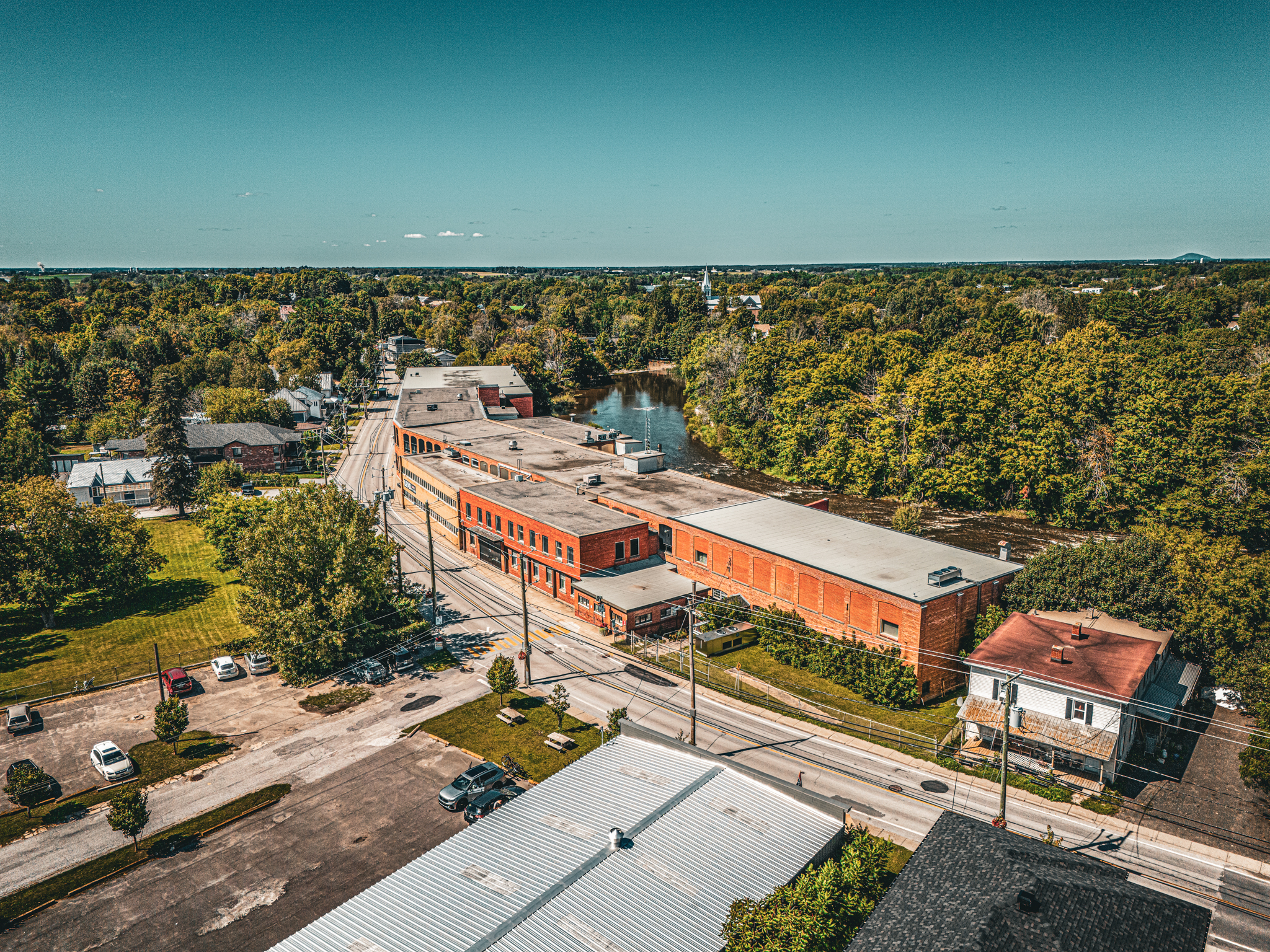 Welcome to Bedford Lofts, situated just an hour from Montreal in the Eastern Townships. Our unique industrial building seamlessly integrates solid wood, steel, and century-old architecture, offering a modern and efficient space. With 14-foot ceilings, brick walls, original wooden and concrete floors, and picturesque views of river falls, this space is both distinctive and functional. Along with ample parking, surveillance, and easy access, our adaptable spaces include two loading docks and lifts. Strategically located, just 10 minutes from American lines and 80 kilometers from Montreal, Bedford Lofts encapsulates the perfect blend of historic charm and contemporary functionality.